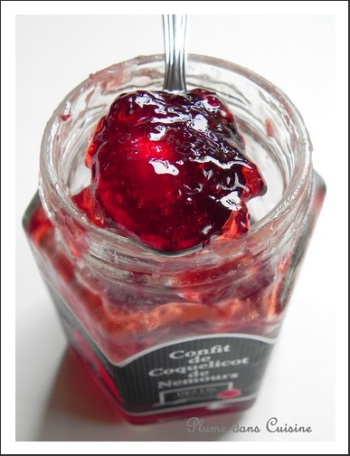 La première bouchée m’a faite penser à une confiture qui a le goût de bonbons aux fruits rouges. Les papilles ont adoré! Ce confit est idéal pour accompagner ou napper élégamment les desserts (yaourt, panacotta, cheesecake…), ou je l’ imagine bien encore inondant de belles crêpes dorées. Mes enfants eux, adorent sur les gauffres!