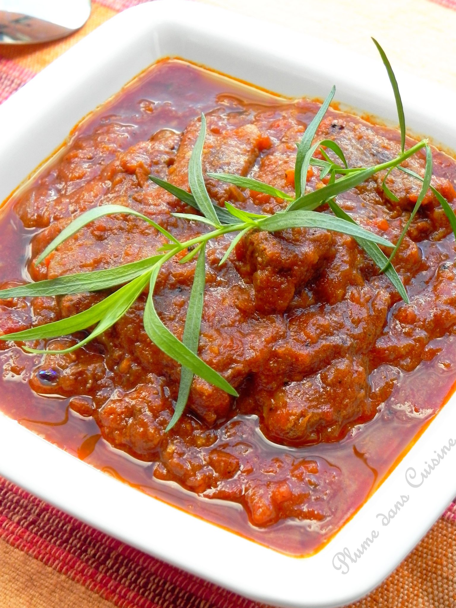 Merci pour ce retour Ipanama. Je t’avoue que j’ai beaucoup hésité à ce titre sachant que la vache est sacrée en inde, et puis je me suis dit, après tout que c’est bien de cette facon là à l’indienne que j’ai préparé mon boeuf…Pour la couleur, je crois que c’est plus les tomates en boîte et le concentré qui donnent cette merveilleuse couleur. Et bien sûr que la recette est la bienvenue sur ton blog, c’est vraiment gentil à toi de vouloir la partager. Et à essayer sans aucun doute avec du poulet! Très bon week-end, ensoleillé j’espère!