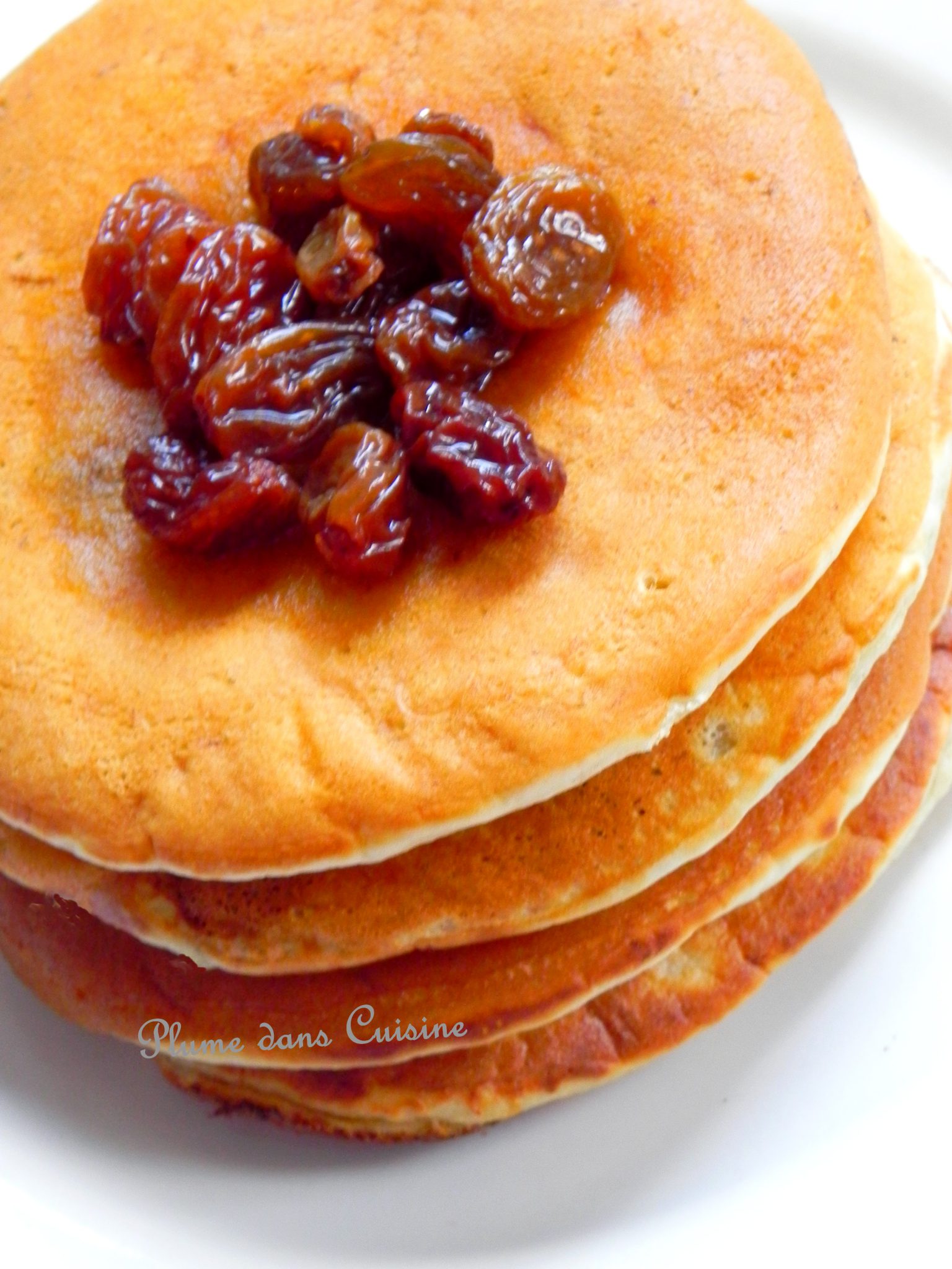 Il vaut mieux faire tremper les raisins dans le rhum plusieurs heures à l’avance, au mieux toute une nuit. Ils en seront ainsi plus savoureux, car bien moelleux et bien imbibés. Moi j’ai toujours au réfrigérateur un bocal de raisins trempés dans du rhum, c’est parfait pour les glaces ou les recettes de dernière minute. Et si vous voulez une excellente recette de pancakes nature très très moelleux, allez jeter un coup d’œil ici.