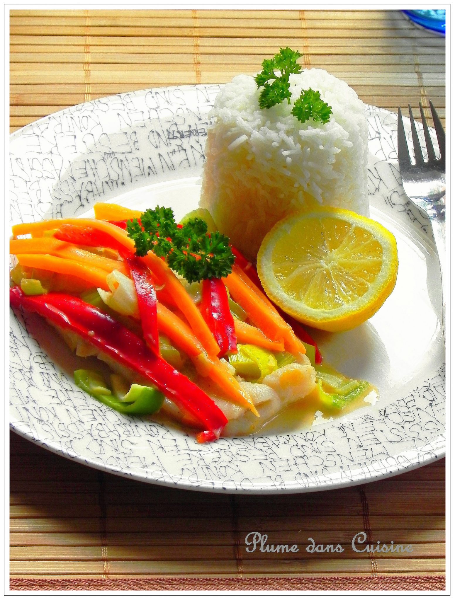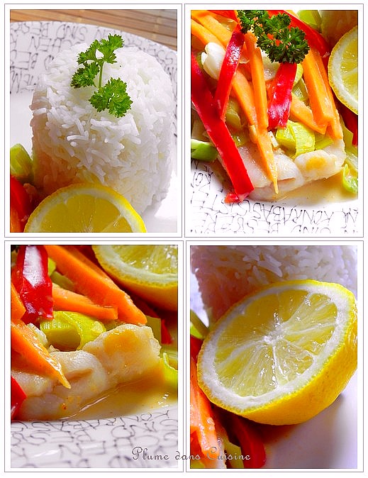 Je ne sais trop quoi dire, alors je serais brève : ta note est très belle, et ton poisson au lait de coco, un régal des yeux !!!!!!! biz biz et bon dimanche ….