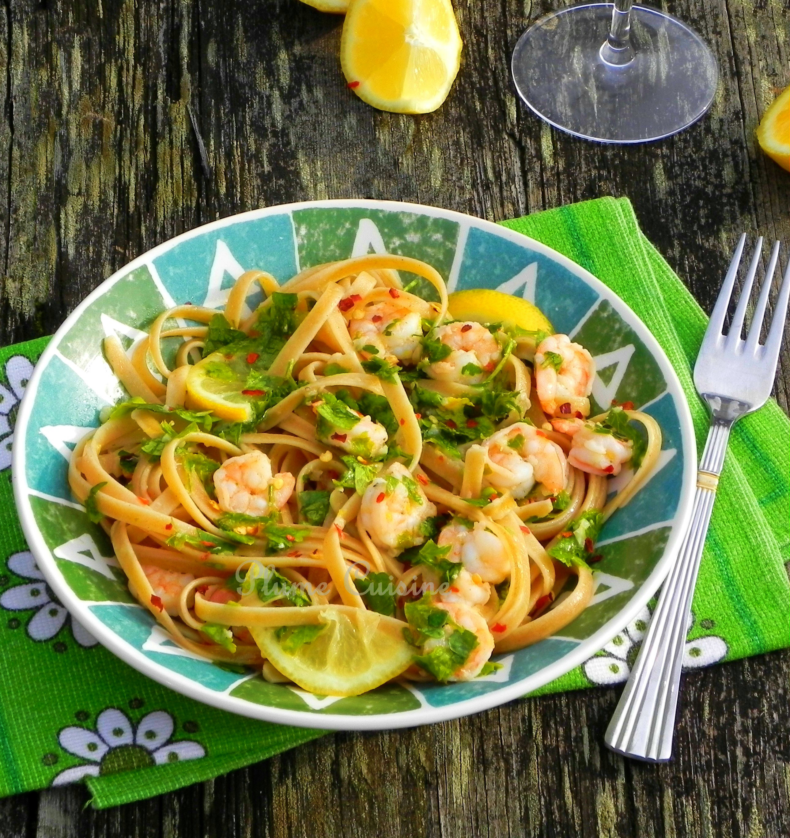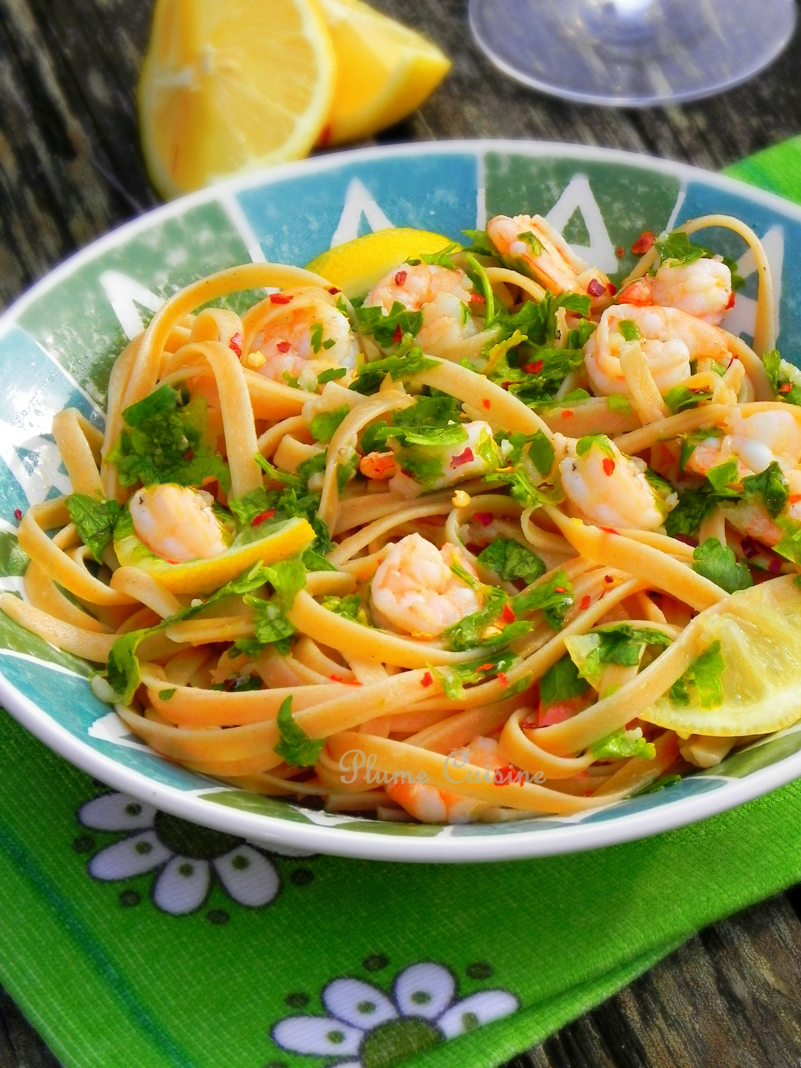 Linguines aux crevettes avec une sauce au citron, à l’ail et au persil : une association tonifiante et savoureuse…